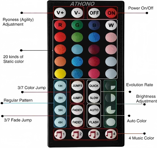 ATHONO LED Strip Lights, 32.8 feet 5050RGB Color Changing 300 LED with Lights, Infrared Music Rhythm Sound Control Light Belt, Used for Home Lighting Kitchen Bed bar Home Party DIY Decoration